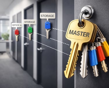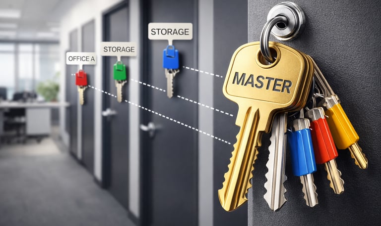Our master key system solutions are designed to give business owners full control over access management. We create structured key hierarchies that allow different access levels for owners, managers, and employees while maintaining overall security. This system reduces the number of keys needed, improves organization, and enhances safety across multi-door and multi-department facilities.